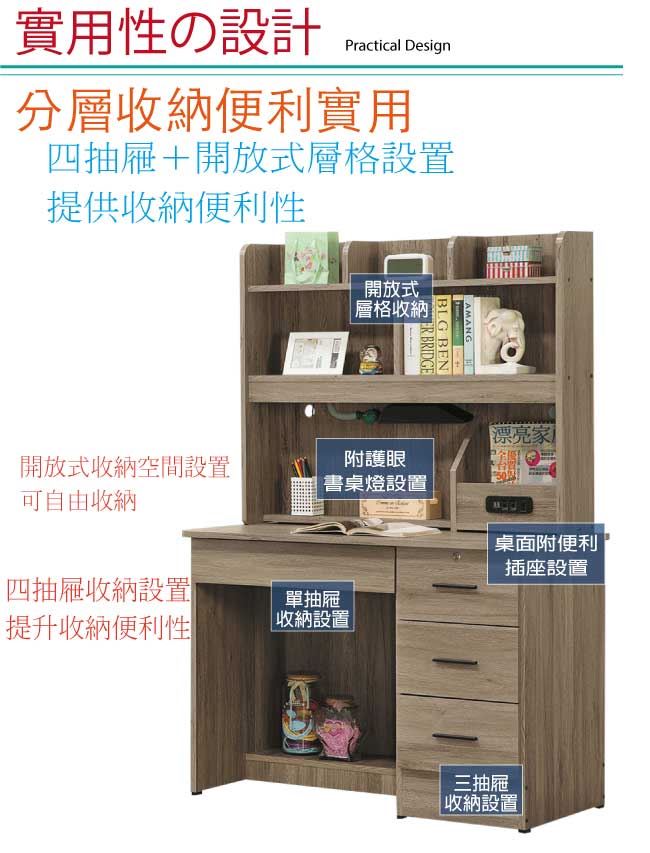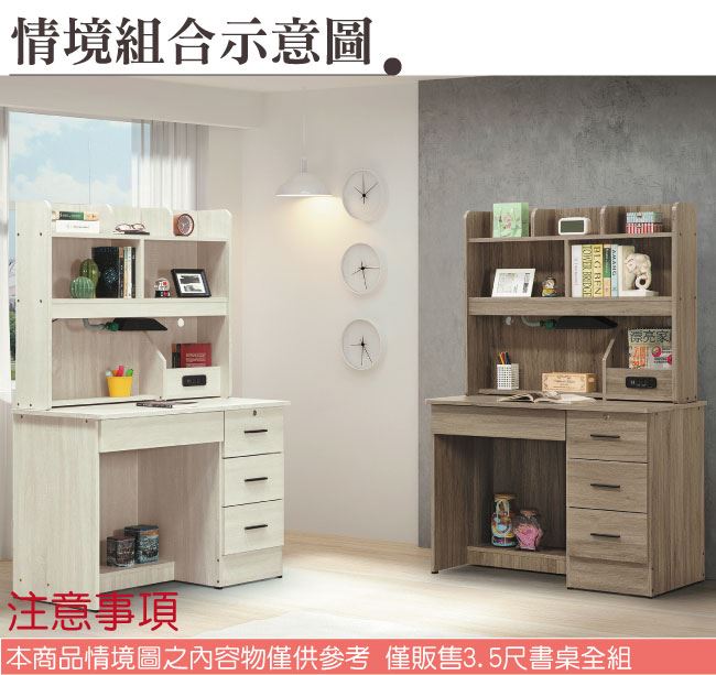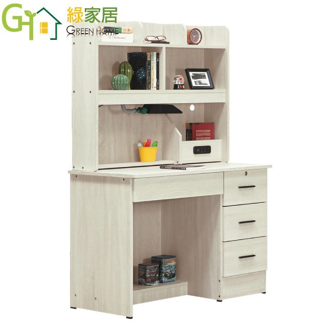 【綠家居】萊瑞 時尚3.5尺四抽書桌組合(三色可選)