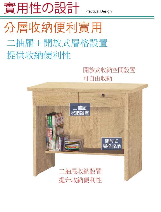 【綠家居】凡帝斯 時尚3尺二抽書桌(六色可選)