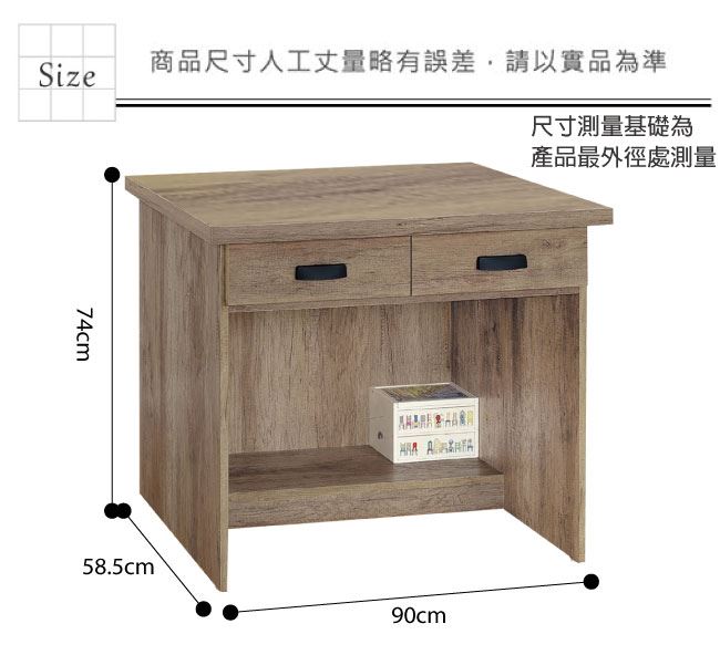 材質 | ◆產品名稱: 【綠家居】凡凱琳 時尚3尺二抽書桌 產品尺寸: 尺寸:(寬)90x(深)58.5x(高)74/公分 ◆材質: 材質:防蛀木心板+防潮耐磨腳座 材質:五金滑軌結構 塗漆:優利坦全包式耐磨噴漆處理