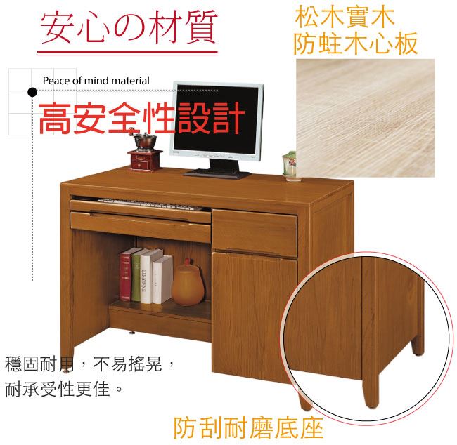 材質 | ◆產品名稱:【綠家居】丹妮利實木3.5尺鍵盤式書桌 尺寸:(寬)106x(深)60.5(高)82.2/公分 ◆材質: 材質:松木實木+防蛀木心板+防刮耐磨腳座+五金滑軌結構 噴漆:防潮耐磨噴漆處理