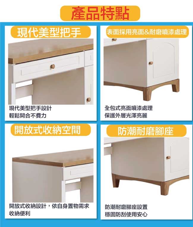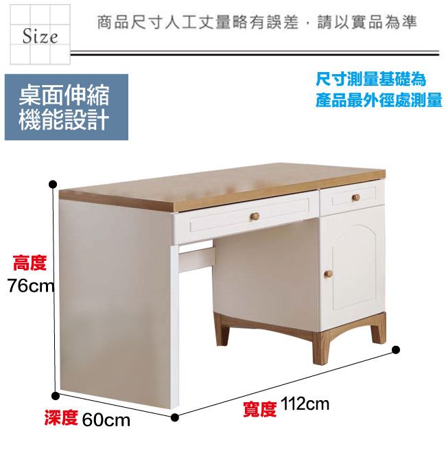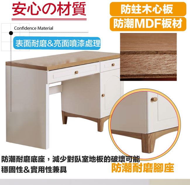 材質 | ◆產品名稱:【綠家居】路可雙色3.7尺單門二抽書桌 尺寸:(寬)112x(深)60(高)76/公分 ◆材質: 材質:防蛀木心板+防潮MDF板材+防潮耐磨腳座+五金滑軌結構 噴漆:防潮耐磨&亮面噴漆處理