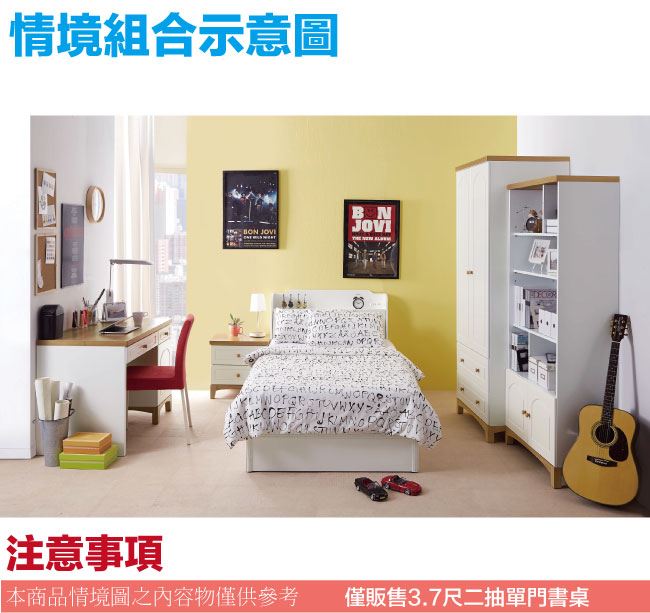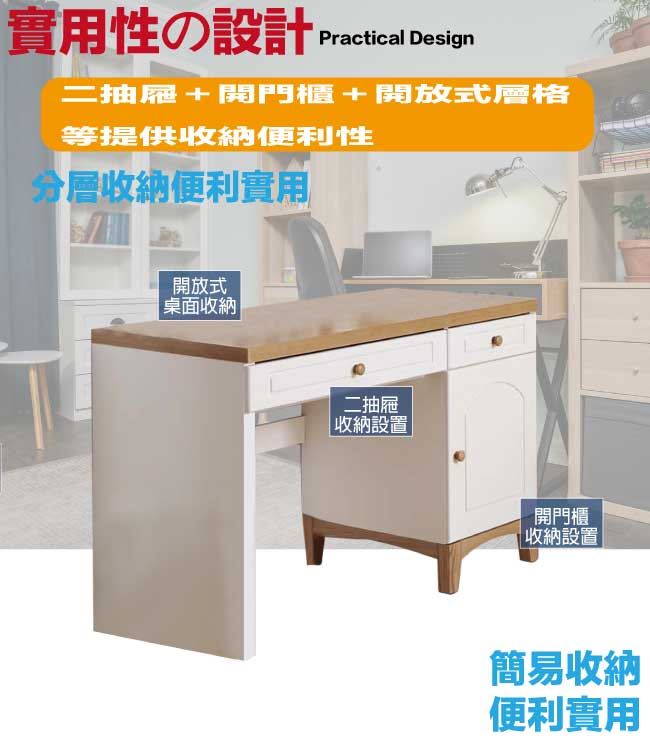 【綠家居】路可雙色3.7尺單門二抽書桌