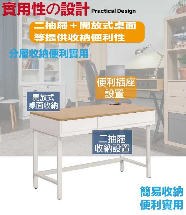 【綠家居】奈吉亞雙色3.7尺二抽書桌