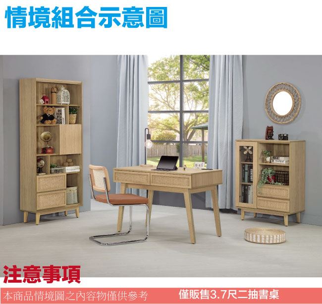 商品 介紹 | 【綠家居】神奈川編織紋3.7尺二抽書桌 木紋雙色系+現代簡約風格+安心材質製造,使用放心+搭配居家更便利,整體採用防蛀木心板+防潮耐磨腳座+五金滑軌結構+藤質編織網格等材質搭配外層採用優莉坦耐磨全包式噴漆處理 ,採用二抽屜+開放式桌面等收納空間設計,全由專人配送到家,專業安心服務,替你省下更多時間! 【商品特色】 木紋雙色系+現代簡約風格+安心材質製造,使用放心+搭配居家更便利 防蛀木心板+防潮耐磨腳座+五金滑軌結構+藤質編織網格等材質 採用二抽屜+開放式桌面等收納空間設計 此商品不需要DIY組立,此商品為組立後之成品 品質保證、專業設計、貼心服務 全由專人配送到家,專業安心服務,替您省下更多時間 |