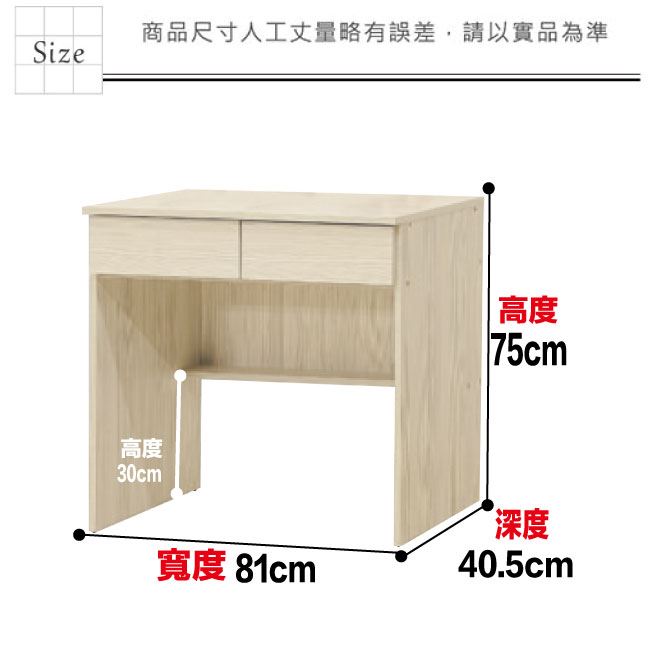 材質 | ◆產品名稱:【綠家居】卡多里2.7尺二抽書桌(二色可選) 尺寸:(寬)81x(深)40.5(高)75/公分 ◆材質: 材質:防蛀木心板+防潮耐磨腳座 噴漆:防潮耐磨噴漆處理 |