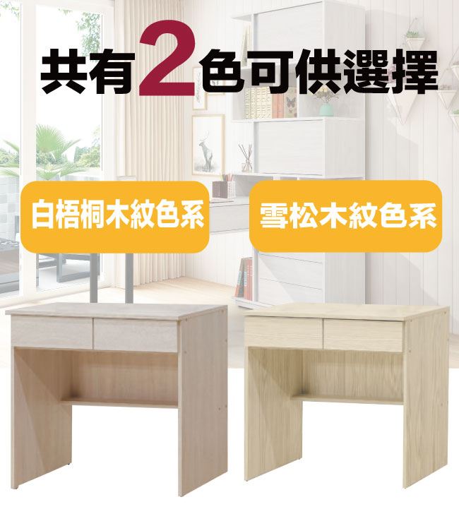 商 品 介 紹 | 【綠家居】卡多里2.7尺二抽書桌(二色可選) 二色系可選+現代簡約風格+安心材質製造,整體採用防蛀木心板++防潮耐磨腳座等安心材質製造,產品外層採用防潮耐磨噴漆處理搭配採用二抽屜+開放式桌面等收納空間設計,全由專人配送到家,專業安心服務,替你省下更多時間! 【商品特色】 二色系可選+現代簡約風格+安心材質製造,使用放心+搭配居家更便利 採用防蛀木心板+防潮耐磨腳座等安心材質製造 產品外層採用防潮耐磨噴漆處理 搭配採用二抽屜+開放式桌面等收納空間設計 此商品不需要DIY組立,此商品為組立後之成品 全由專人配送到家,專業安心服務,替您省下更多時間