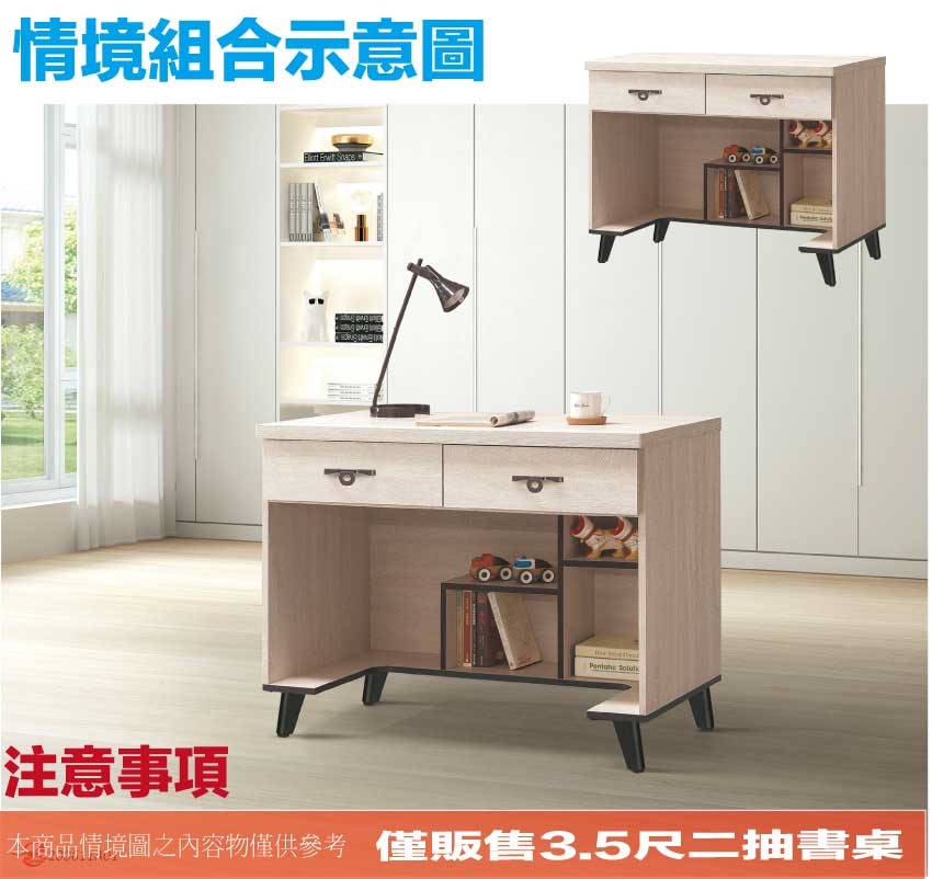 - ◆產品名稱:【綠家居】米砂3.5尺二抽書桌