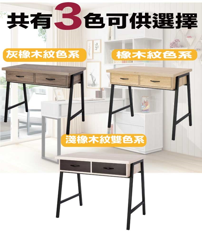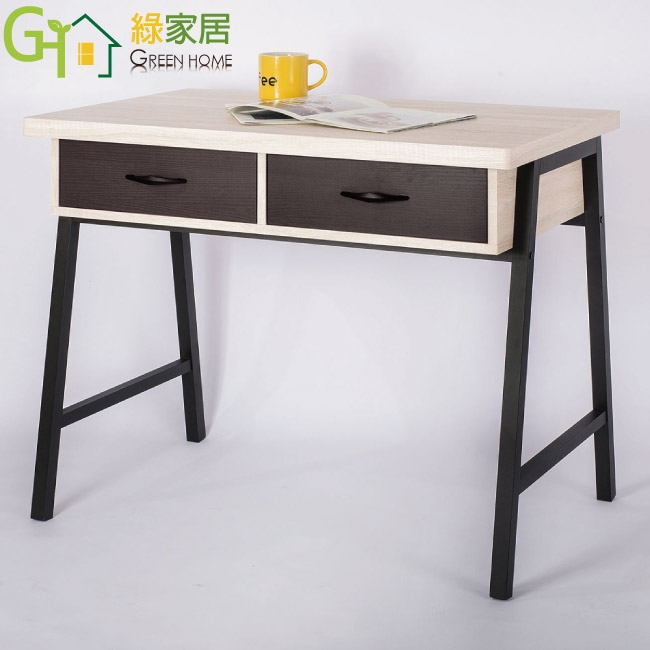 【綠家居】米哥3.2尺二抽書桌(三色可選)