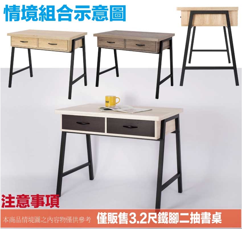 - ◆產品名稱:【綠家居】米哥3.2尺二抽書桌(三色可選)