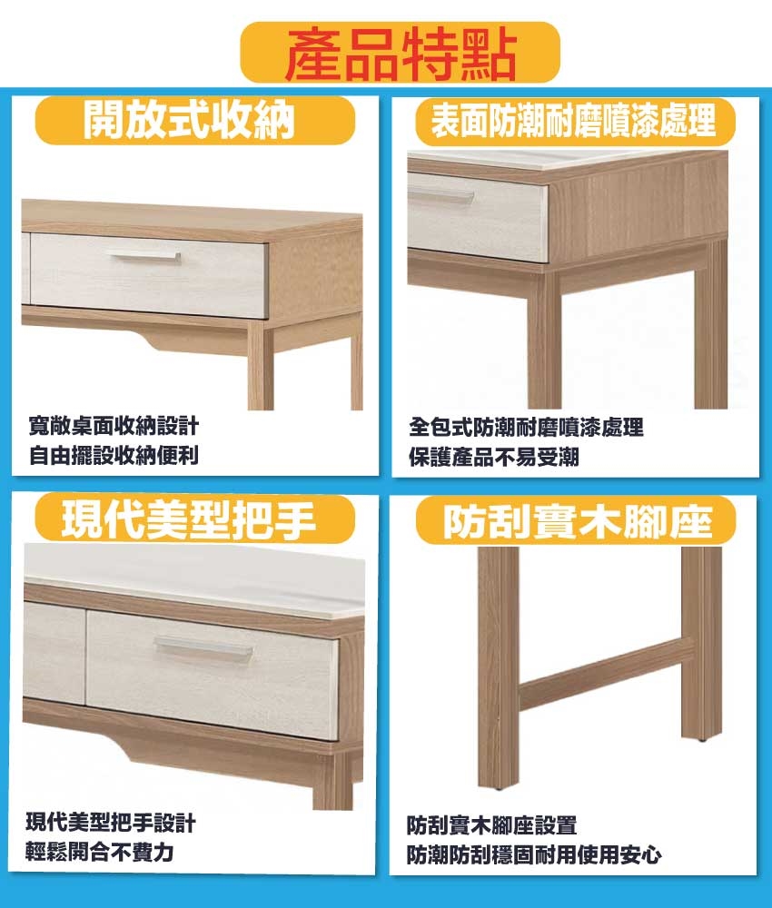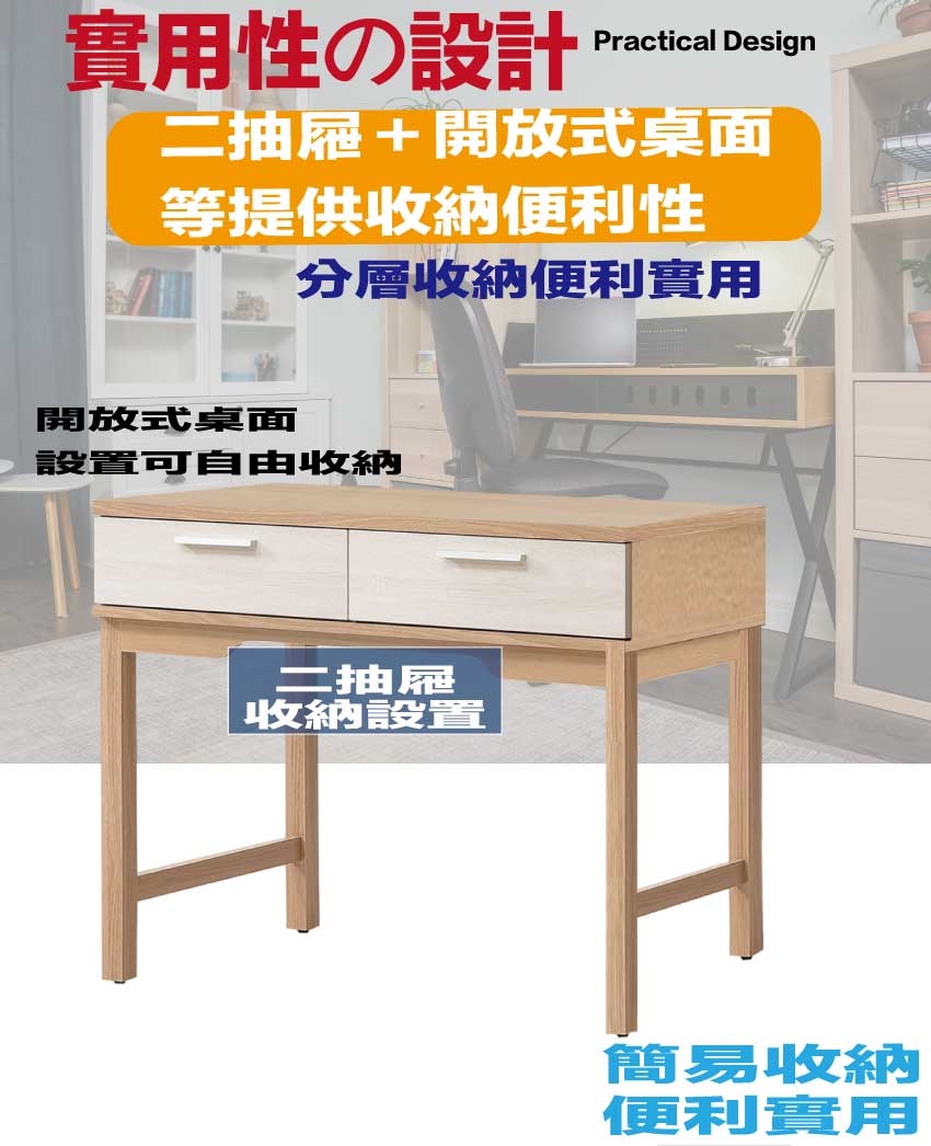 搭配採用二抽屜+開放式桌面等收納空間設計