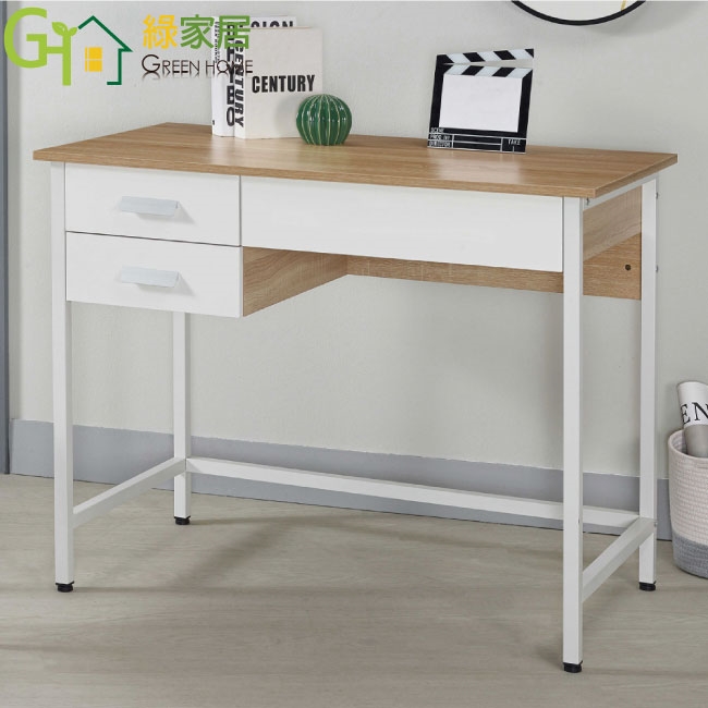 【綠家居】蘿克3.3尺三抽鐵腳書桌