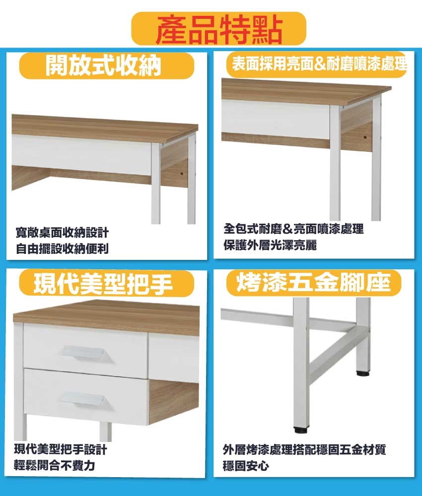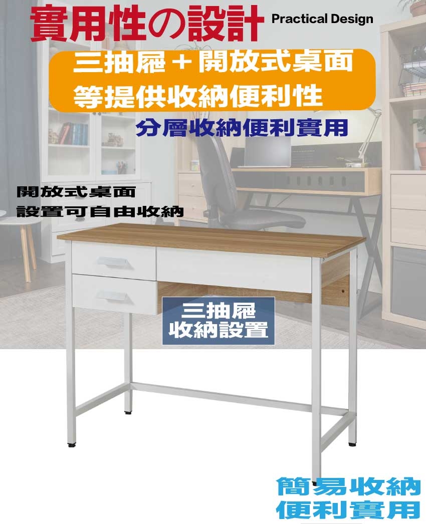 - ◆產品名稱:【綠家居】蘿克3.3尺三抽鐵腳書桌