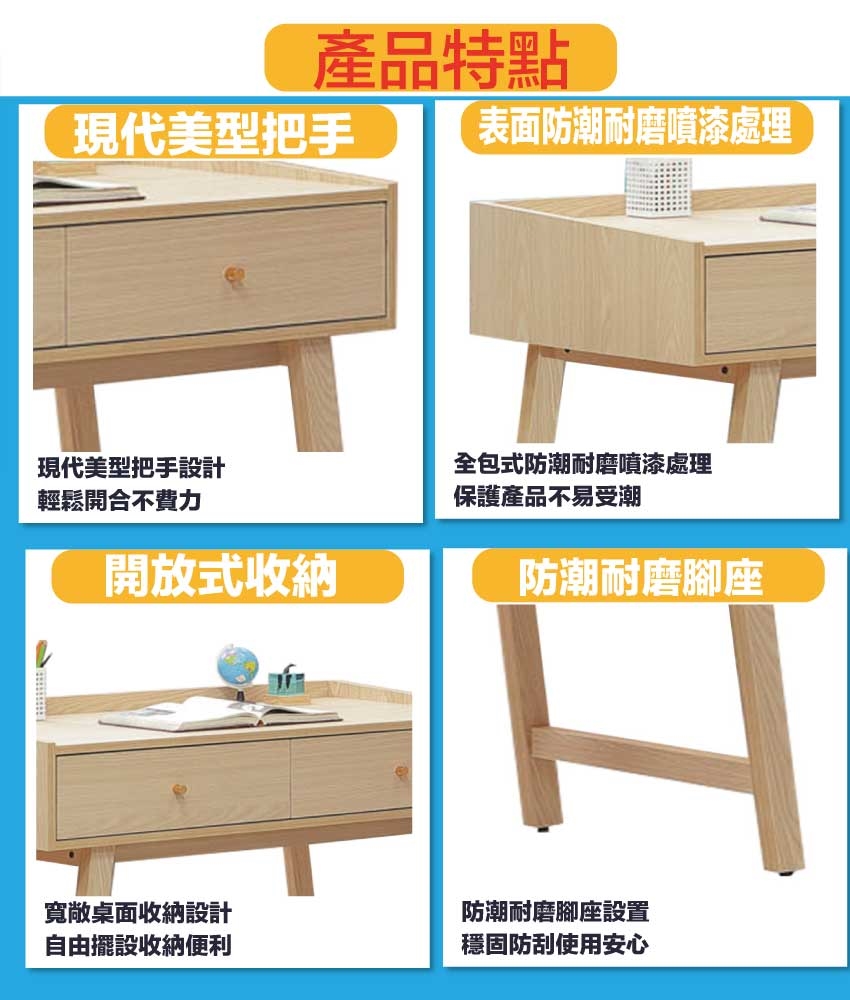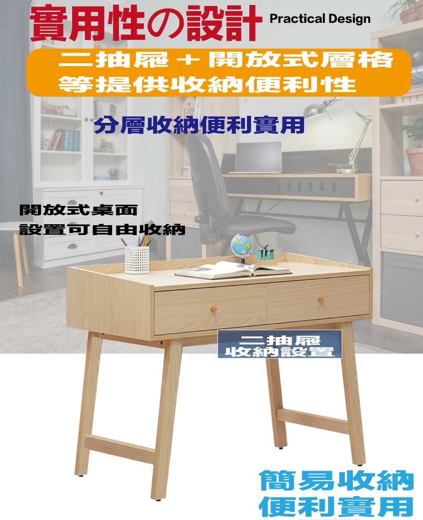 搭配採用二抽屜+開放式桌面等收納空間設計
