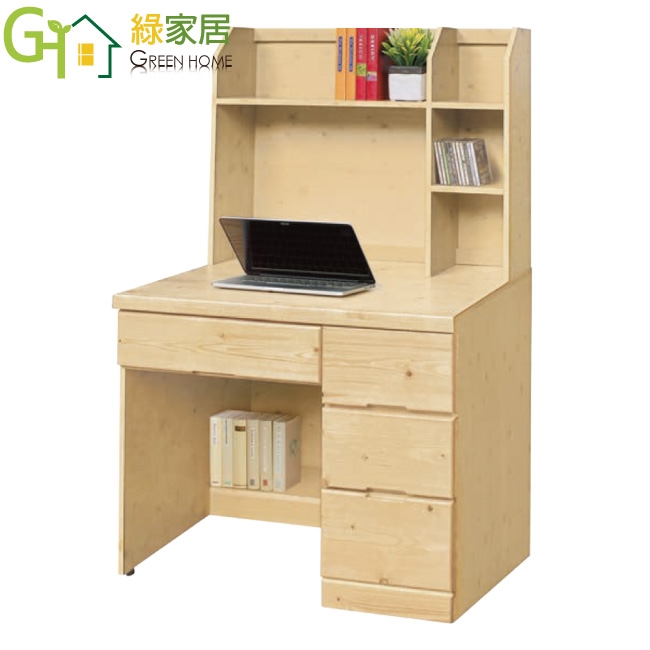 【綠家居】歐瑞實木3.3尺四抽書桌組合