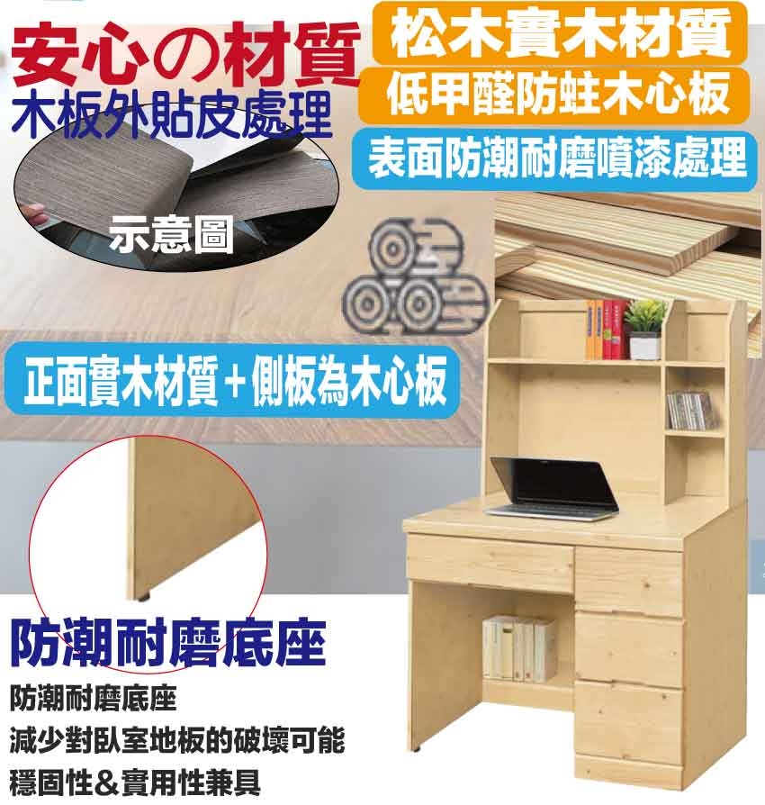 材質:松木實木+防蛀木心板+防潮耐磨底座