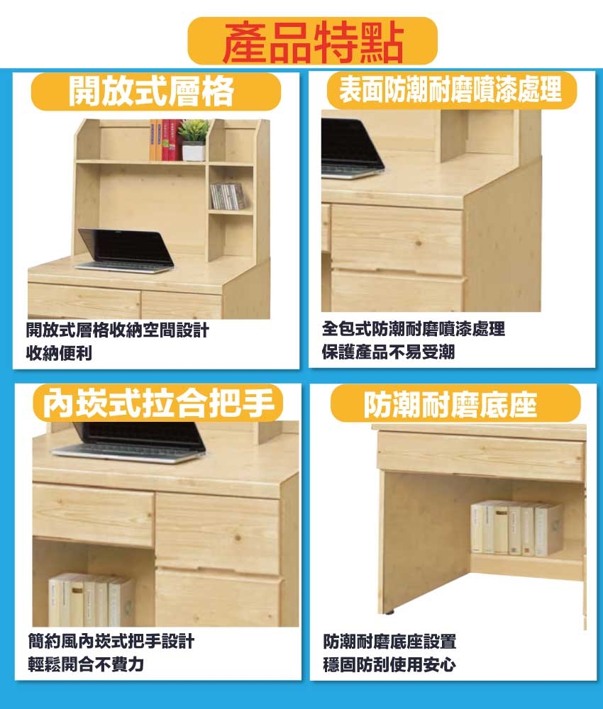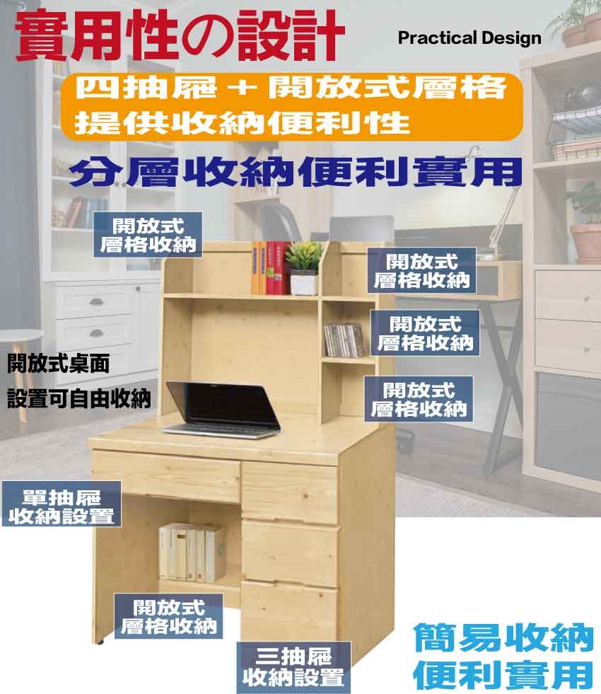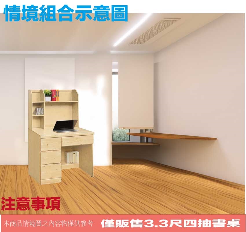 ★偏遠地區需額外加收運費,下標請先問與答詢問★ ★下訂前注意 由於商品流動較快,下訂前請先詢問是否有貨在下訂喔~★ 【綠家居】歐瑞實木3.3尺四抽書桌組合 松木紋色系+安心材質製造,使用放心+搭配居家更便利,採用松木實木+防蛀木心板+防潮耐磨底座等安心材質製造 ,外層採用防潮耐磨噴漆處理搭配採用四抽屜+開放層格等收納空間設計,全由專人配送到家,專業安心服務,替你省下更多時間!