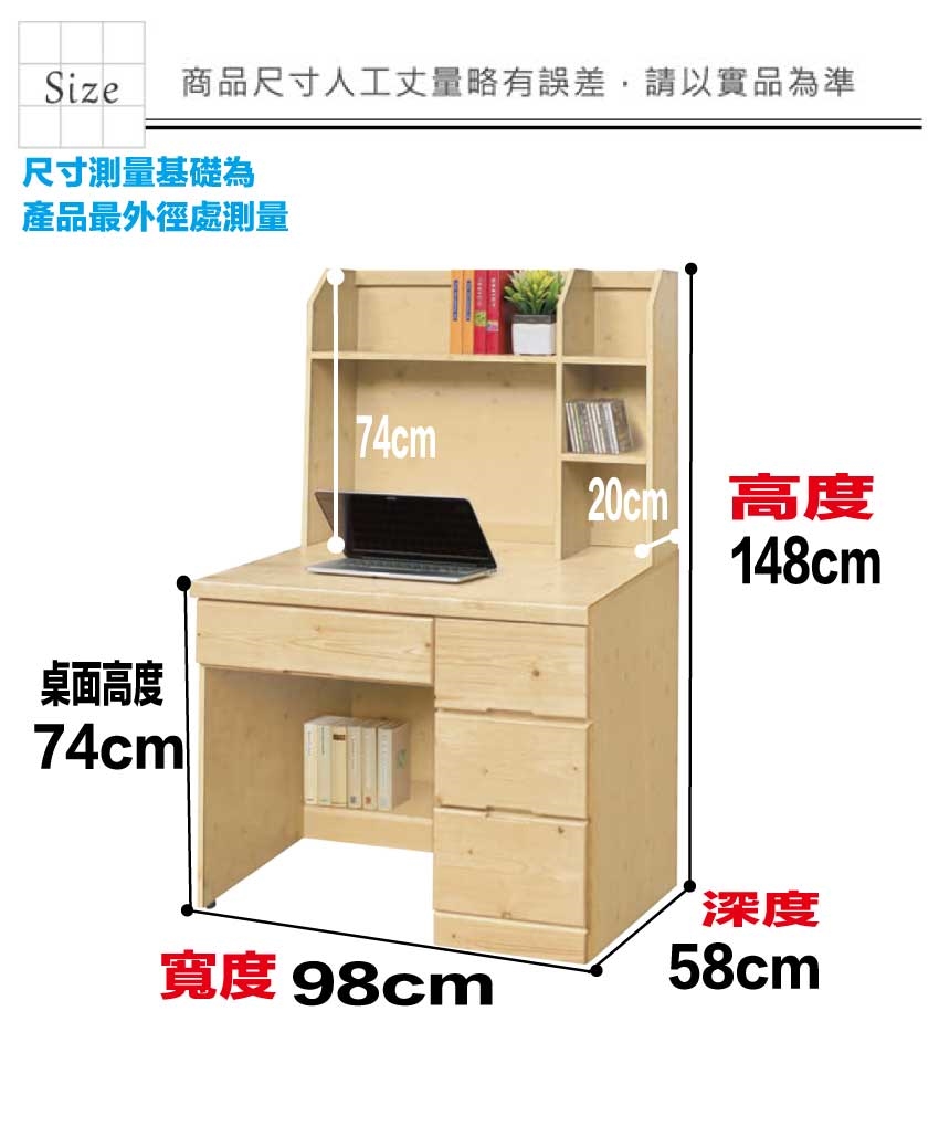 產品名稱:【綠家居】歐瑞實木3.3尺四抽書桌組合 - 尺寸:(寬)98x(深)58x(高)148/公分