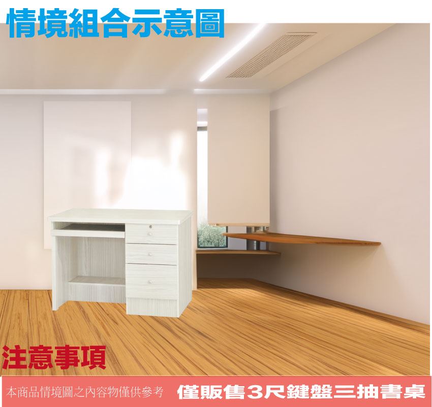 ◆產品名稱:【綠家居】拓也3尺鍵盤三抽書桌