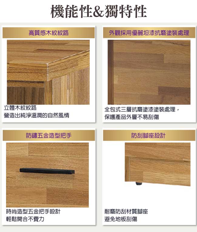 防蛀木心板+鋼珠滑軌結構等材質,堅固耐用,不易損壞