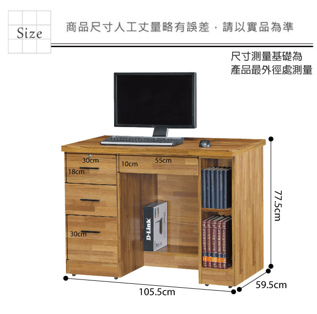 書桌:(寬)105.5 x(深)59.5 x(高)77.5/公分