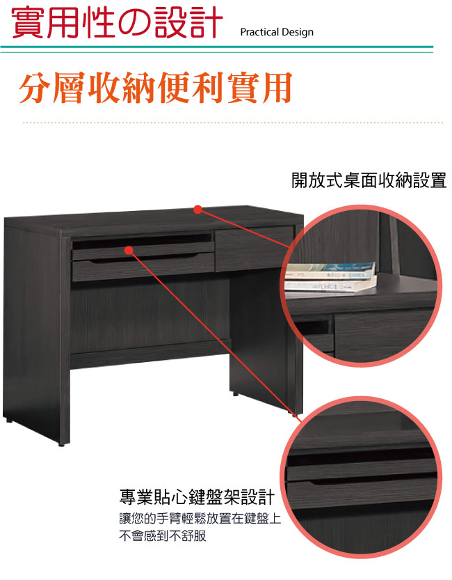 單抽屜+開放式+拉合式鍵盤等空間設計,便利收納使用