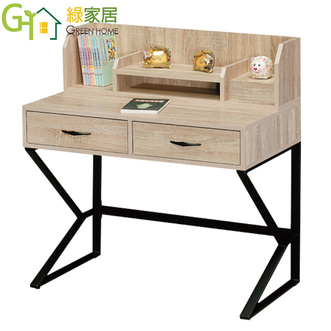 【綠家居】依美 多功能3.2尺二抽書桌組合(二色可選)