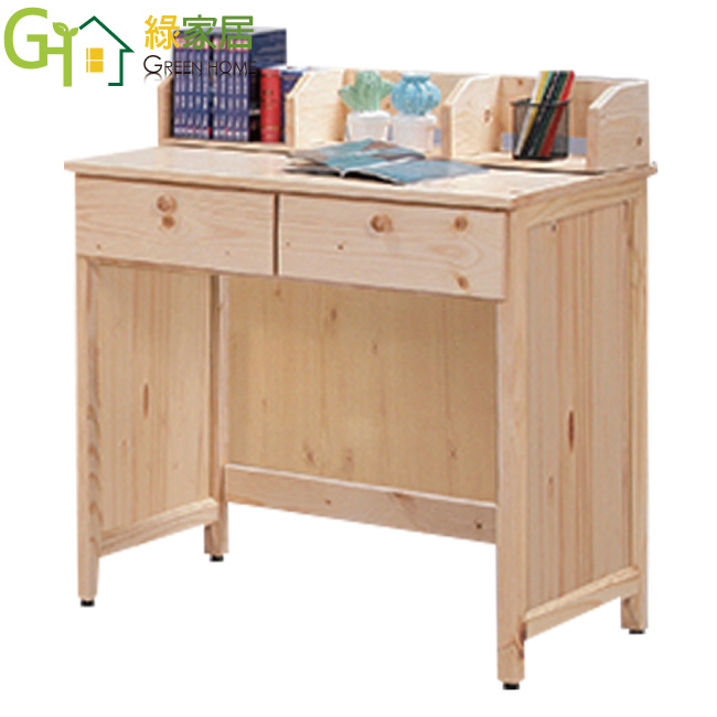 【綠家居】莉莉 現代3尺二抽實木書桌(含桌上書架)