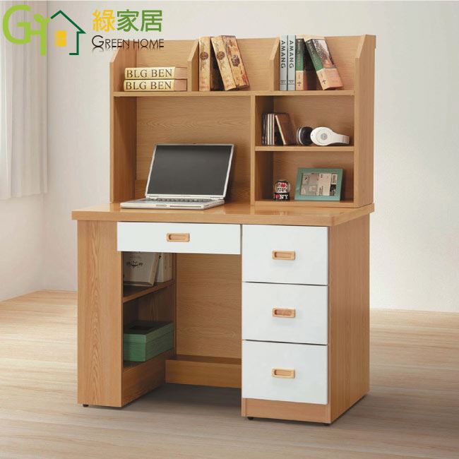 【綠家居】茲辛 現代3.5尺四抽書桌組合(上+下座)