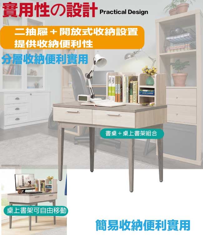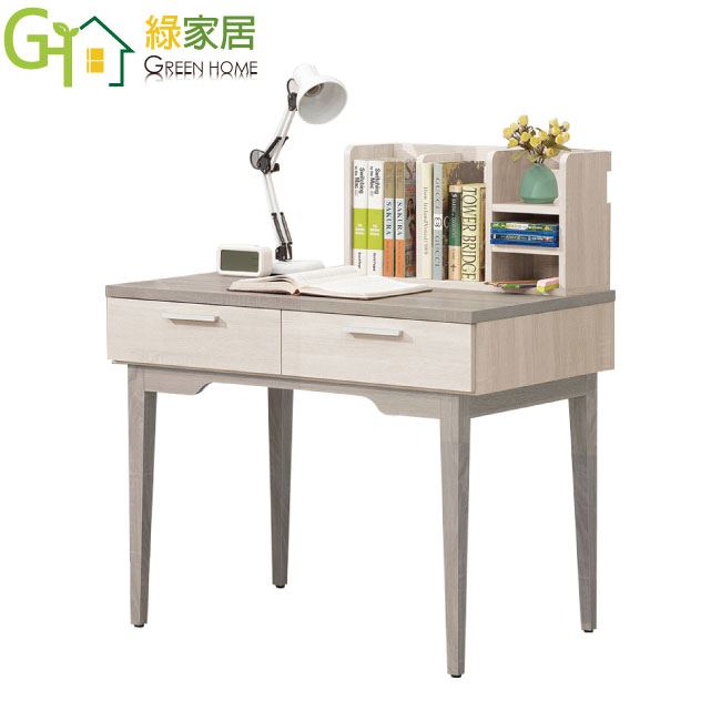 【綠家居】芙娜雙色3.3尺二抽書桌組合(書桌+桌上收納櫃)