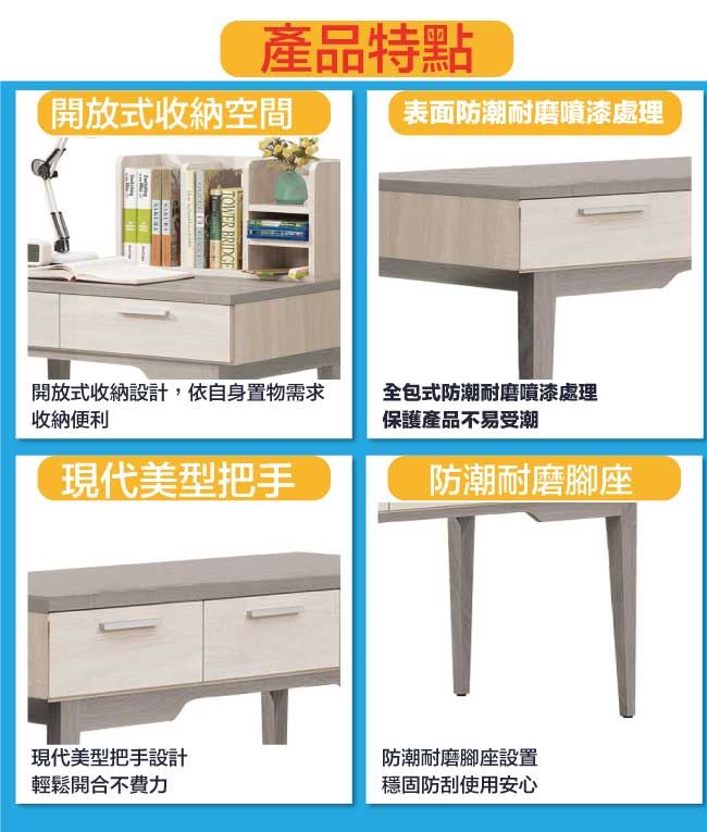 商品 介紹 | 【綠家居】芙娜雙色3.3尺二抽書桌組合(書桌+桌上收納櫃) 木紋雙色系+現代簡約風格+安心材質製造,整體採用防蛀木心板+防潮耐磨腳座+五金滑軌結構等安心材質製造,產品外層採用防潮耐磨噴漆處理搭配採用二抽屜+開放式收納櫃等收納空間設計,全由專人配送到家,專業安心服務,替你省下更多時間! 【商品特色】 木紋雙色系+現代簡約風格+安心材質製造,使用放心+搭配居家更便利 採用防蛀木心板+防潮耐磨腳座+五金滑軌結構等安心材質製造 產品外層採用防潮耐磨噴漆處理 採用二抽屜+開放式收納櫃等收納空間設計 此商品不需要DIY組立,此商品為組立後之成品 品質保證、專業設計、貼心服務 全由專人配送到家,專業安心服務,替您省下更多時間 |