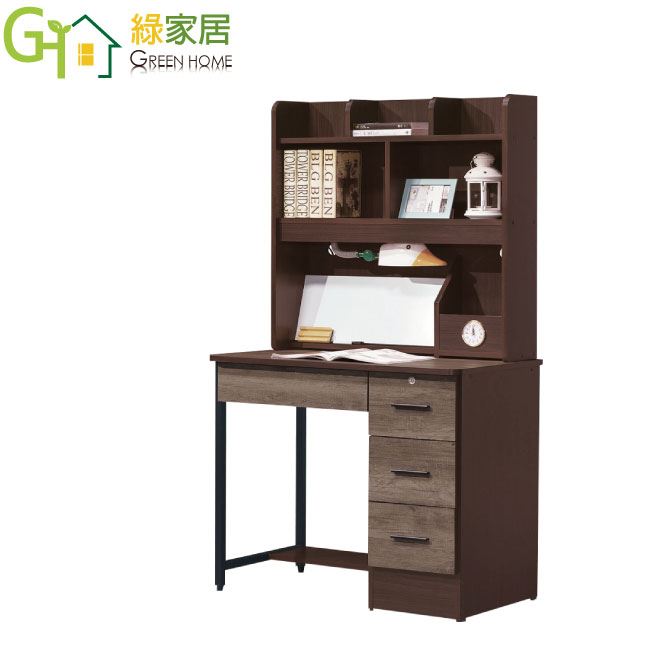 【綠家居】尼克3尺四抽高書桌鐵架組合(二色可選)