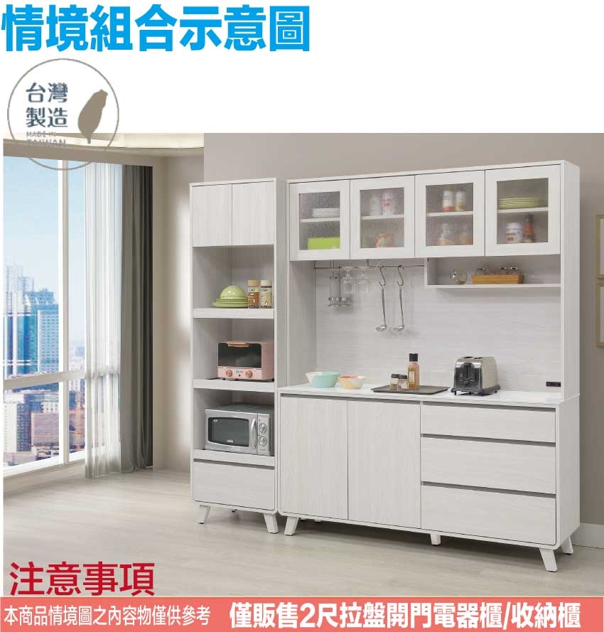 - ◆產品名稱:【綠家居】泰格2尺二門單抽三拉盤收納櫃/電器櫃