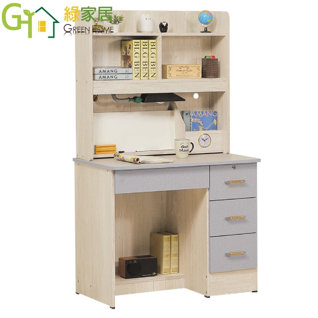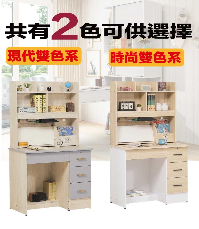 【綠家居】伊達雙色3尺四抽高書桌組合(二色可選+附LED可調書桌燈)