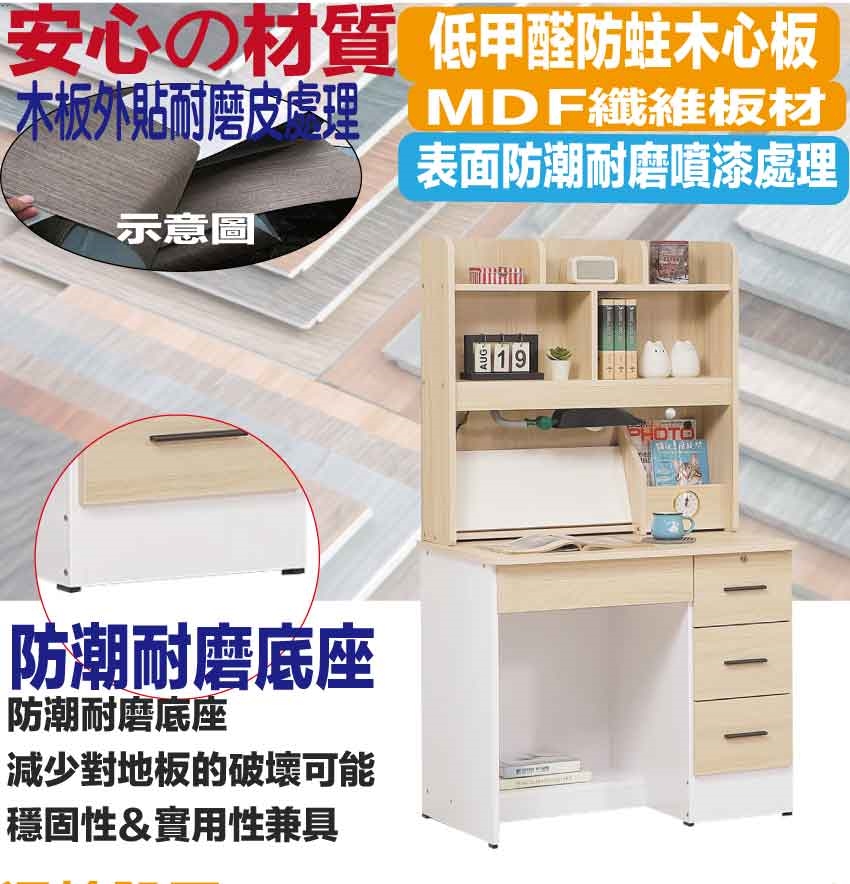 ★偏遠地區需額外加收運費,下標請先問與答詢問★ ★下訂前注意 由於商品流動較快,下訂前請先詢問是否有貨在下訂喔~★ 【綠家居】伊達雙色3尺四抽高書桌組合(二色可選+附LED可調書桌燈) 二色可選+安心材質製造,使用放心+搭配居家更便利,採用防蛀木心板+防潮耐磨底座+五金滑軌結構等安心材質製造 ,外層採用防潮耐磨噴漆處理搭配採用四抽屜+開放多層格+可調書桌燈等收納空間設計,全由專人配送到家,專業安心服務,替你省下更多時間!