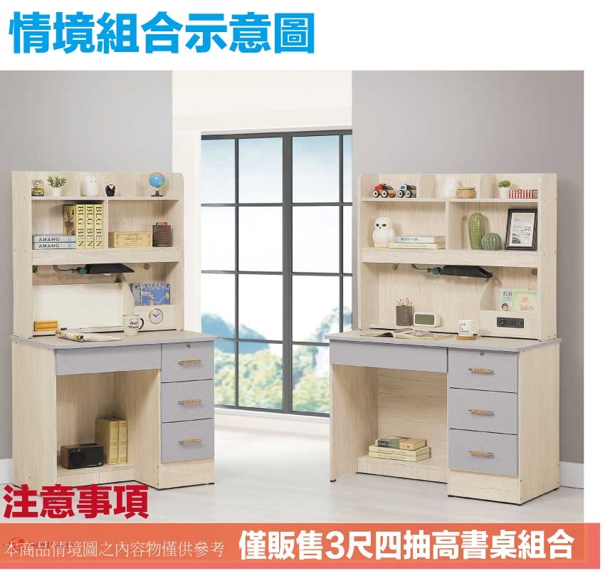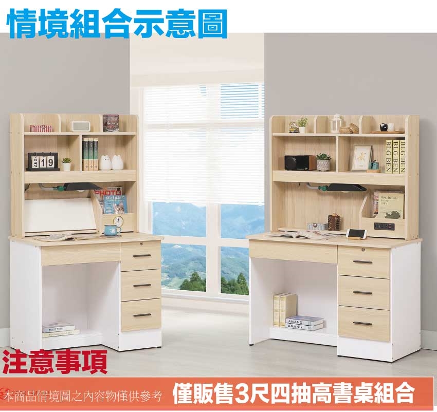 - ◆產品名稱:【綠家居】伊達雙色3尺四抽高書桌組合(二色可選+附LED可調書桌燈)
