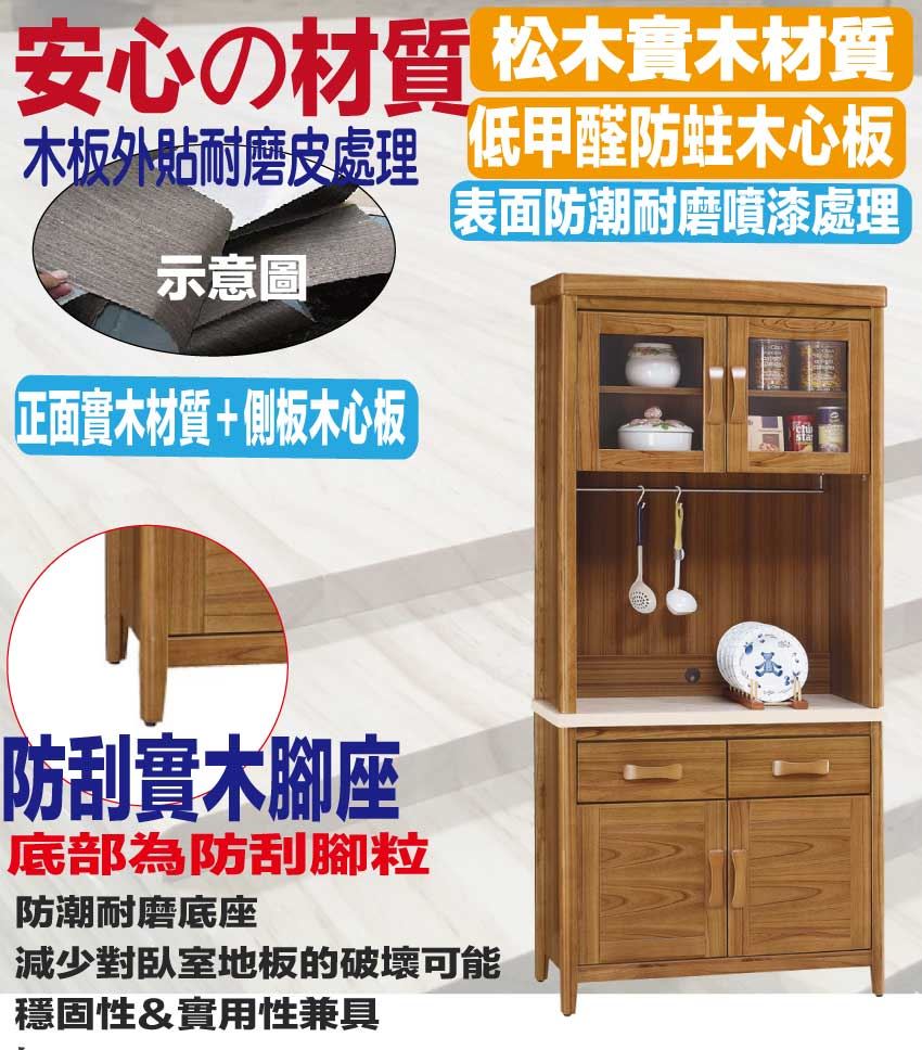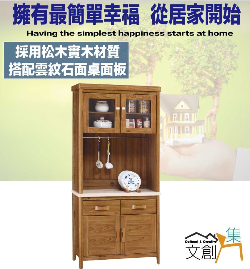 - 產品名稱:【綠家居】巴格3尺雲紋石面實木高餐櫃組合