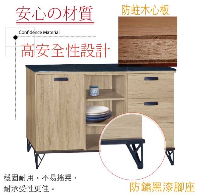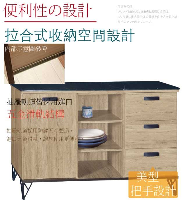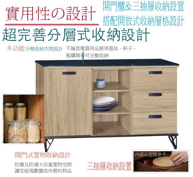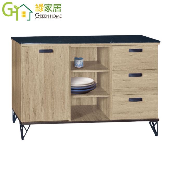 【綠家居】哈爾 橡木紋3.9尺三抽雲紋石面餐櫃