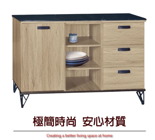 商品介紹 | 【綠家居】哈爾 橡木紋3.9尺三抽雲紋石面餐櫃 橡木紋色系+現代簡約風格+安心材質製造,整體採用防蛀木心板+黑鐵砂腳座+五金滑軌結構+12mm雲紋石面板+防夾手緩衝門片五金等安心材質製造,產品外層採用防潮耐磨噴漆處理搭配採用開門櫃+三抽屜+開放式收納等收納空間設計,全由專人配送到家,專業安心服務,替你省下更多時間! 【商品特色】 橡木紋色系+現代簡約風格+安心材質製造,使用放心+搭配居家更便利 採用防蛀木心板+黑鐵砂腳座+五金滑軌結構+12mm雲紋石面板+防夾手緩衝門片五金等安心材質製造 產品外層採用防潮耐磨噴漆處理 搭配採用開門櫃+三抽屜+開放式收納等收納空間設計 此商品不需要DIY組立,此商品為組立後之成品 品質保證、專業設計、貼心服務 全由專人配送到家,專業安心服務,替您省下更多時間 |