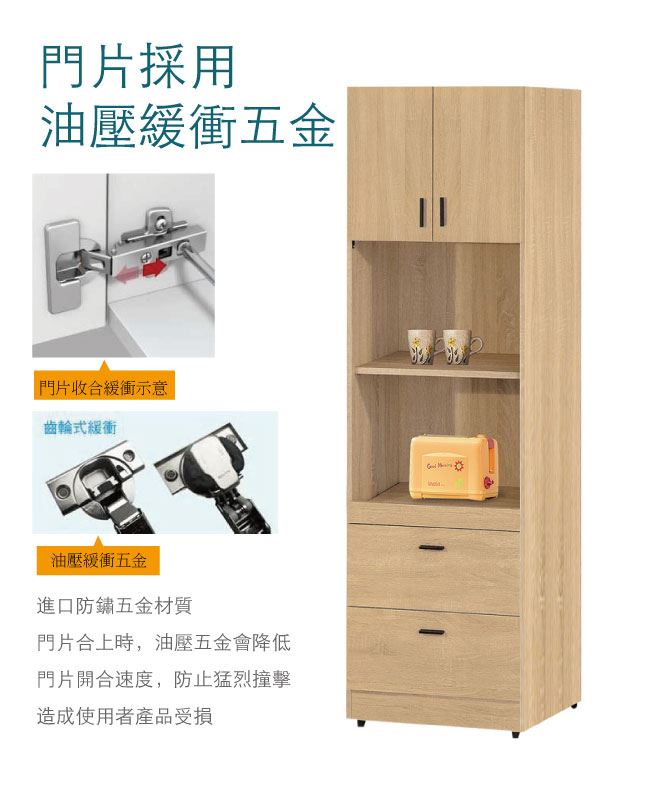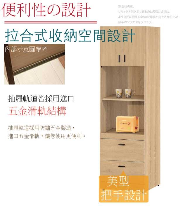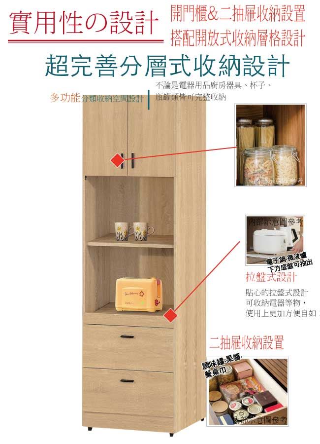 【綠家居】巴哈爾 橡木紋2尺拉盤二門二抽高餐櫃