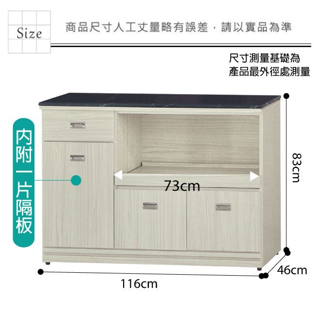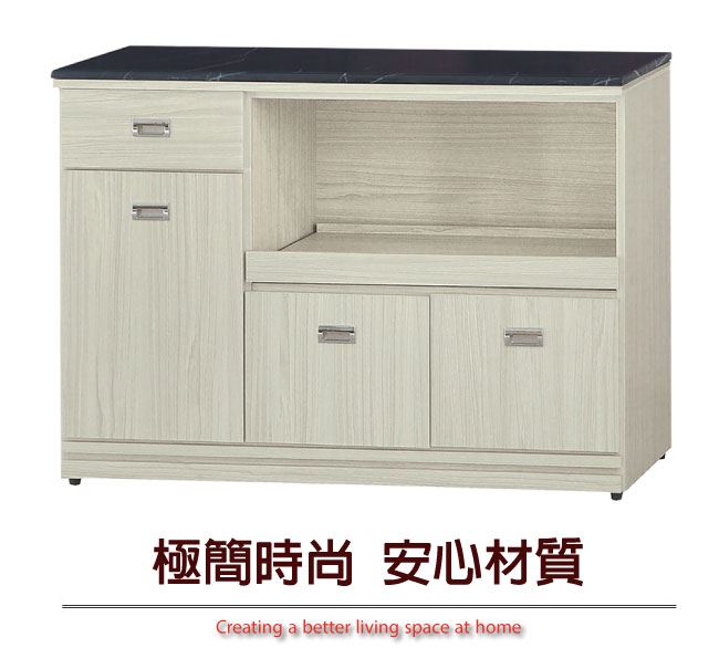 材質 | ◆產品名稱: 【綠家居】喬爾依 雪松木紋3.9尺拉盤雲紋石面餐櫃 尺寸:(寬)116(深)46x(高)83/公分 ◆材質: 材質:防蛀木心板+防潮耐磨腳座+五金滑軌結構+12mm雲紋石面板+防夾手緩衝門片五金 噴漆:防潮耐磨噴漆處理