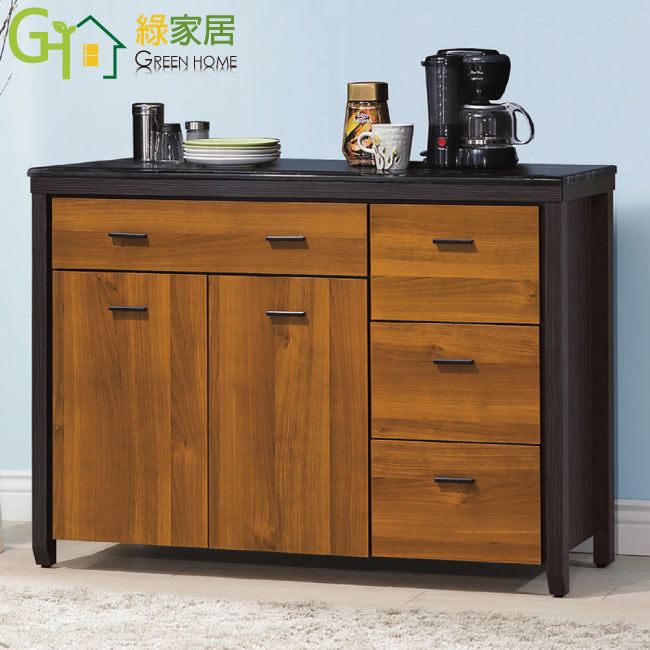 【綠家居】海森 雙色3.9尺雲紋石面餐櫃