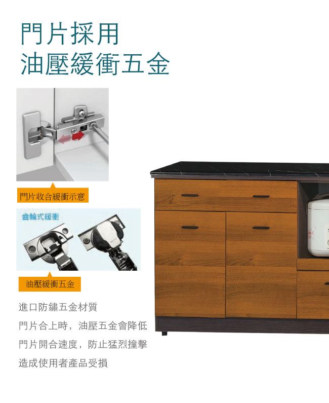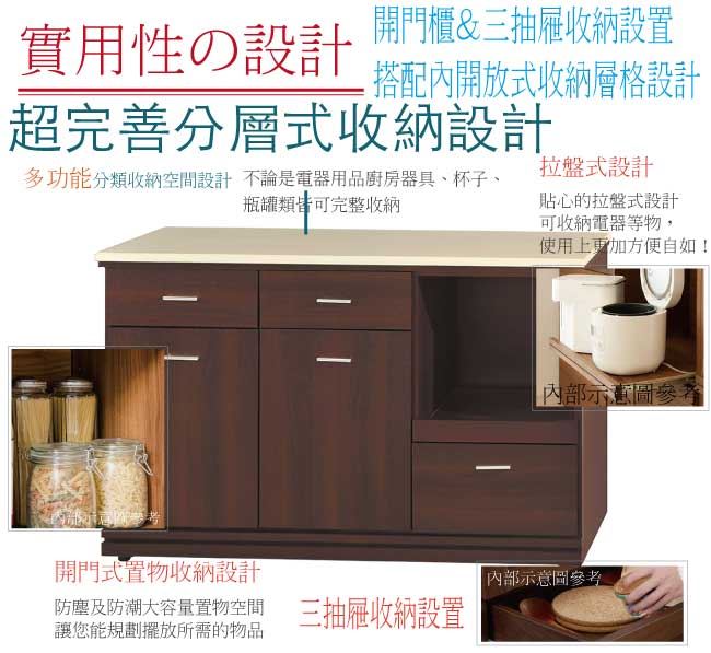 - 開門櫃+三抽屜+拉盤層架