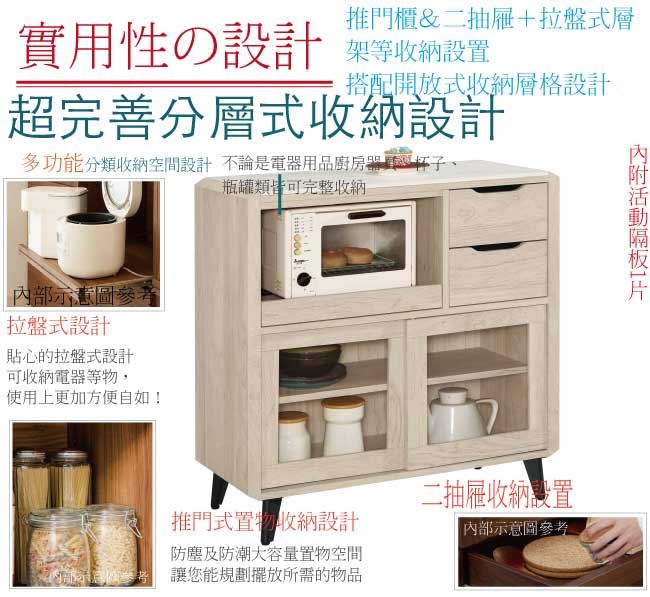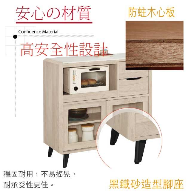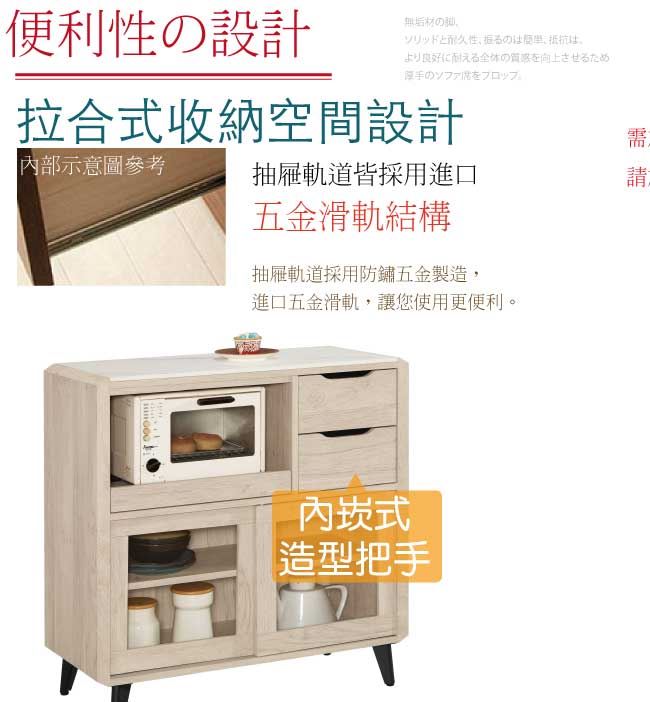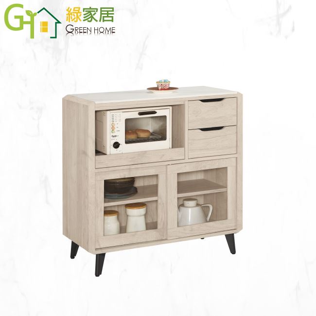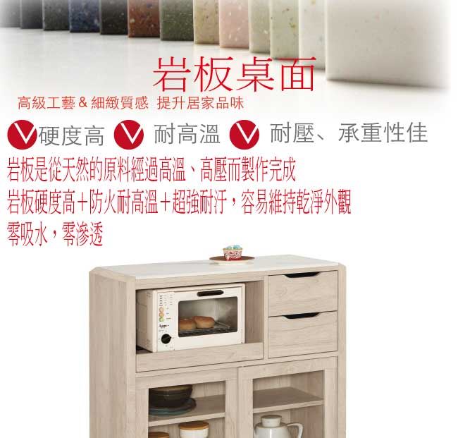 【綠家居】卡蘭 岩板3尺推門二抽餐櫃/收納櫃