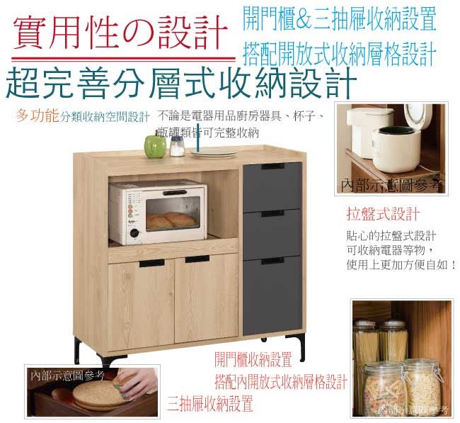 【綠家居】卡泰 雙色3尺二門三抽餐櫃