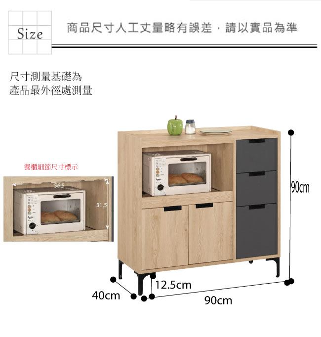 材質 | ◆產品名稱: 【綠家居】卡泰 雙色3尺二門三抽餐櫃 產品尺寸: 尺寸:(寬)90x(深)40x(高)90公分 ◆材質: 材質:防蛀木心板+黑鐵砂腳座 材質:五金滑軌結構+防夾手緩衝門片五金 塗漆:優利坦全包式耐磨噴漆處理