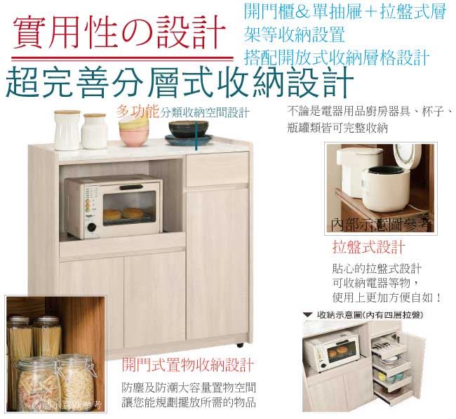 【綠家居】馬加柏 淺橡3尺三門單抽餐櫃/收納櫃
