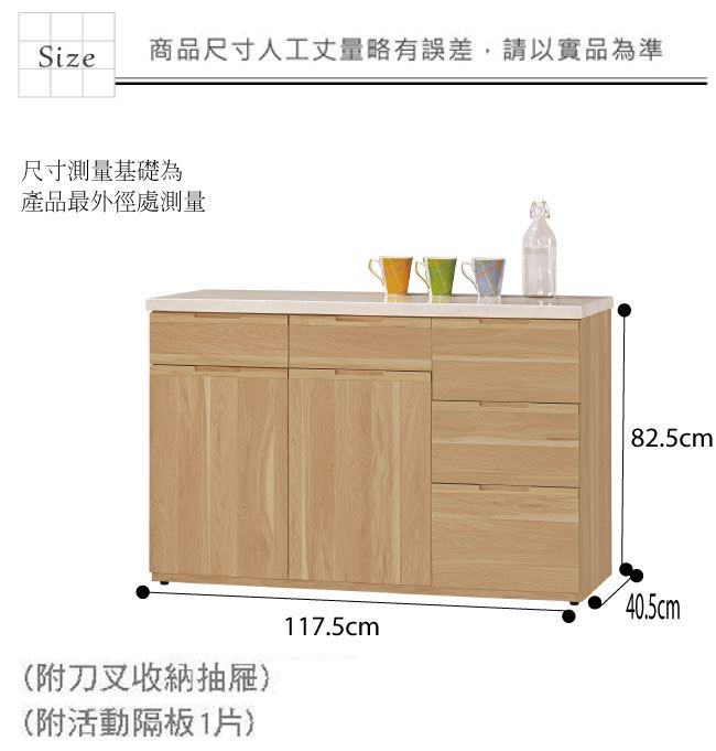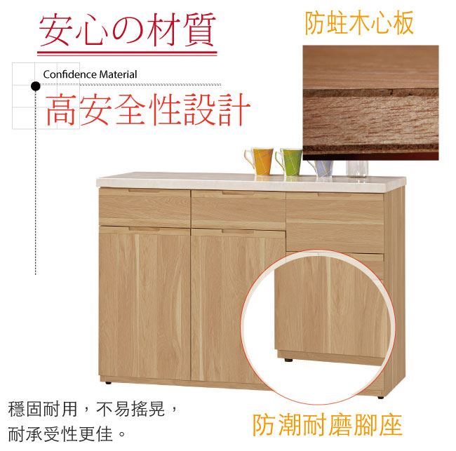 材質 | ◆產品名稱: 【綠家居】魯班特 時尚3.9尺雲紋石面餐櫃 尺寸:(寬)117.5x(深)40.5x(高)82.5/公分 ◆材質: 材質:防蛀木心板+防潮耐磨腳座+五金滑軌結構+2cm雲紋石面板 噴漆:防潮耐磨噴漆處理