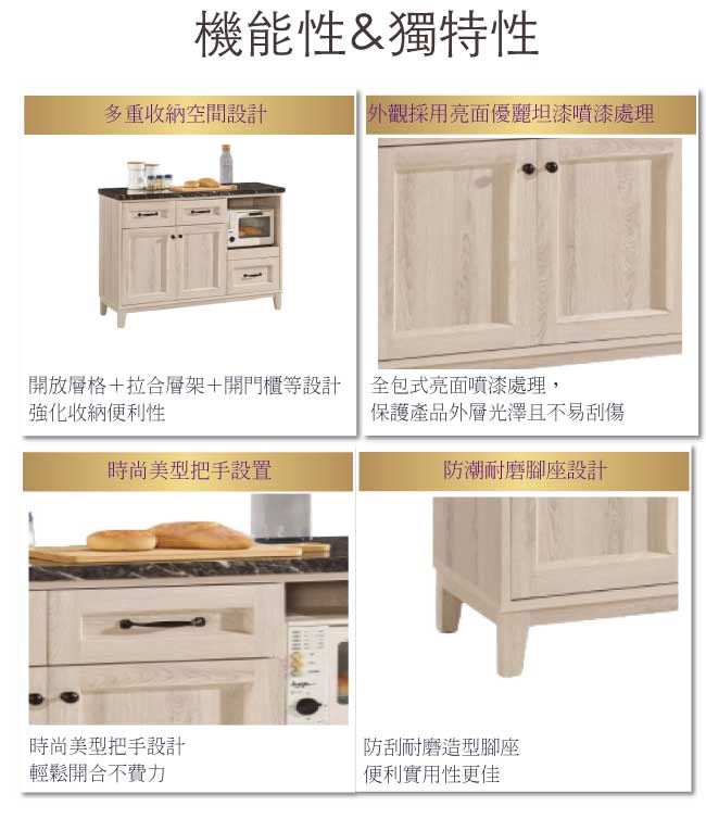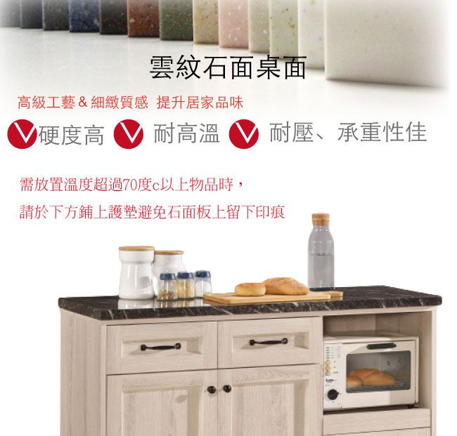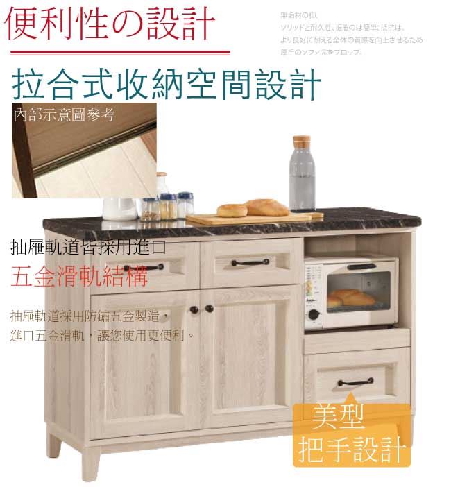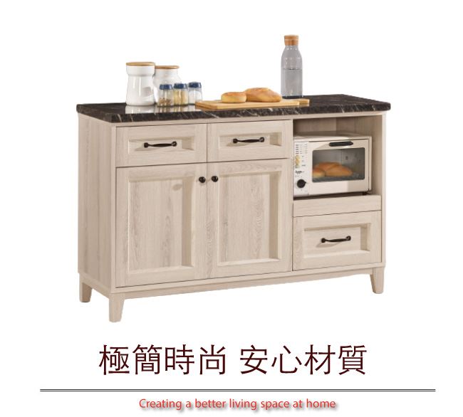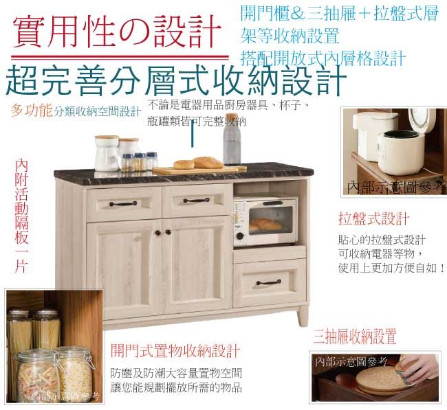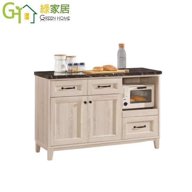 【綠家居】馬拉提 淺橡3.9尺雲紋石面餐櫃/收納櫃