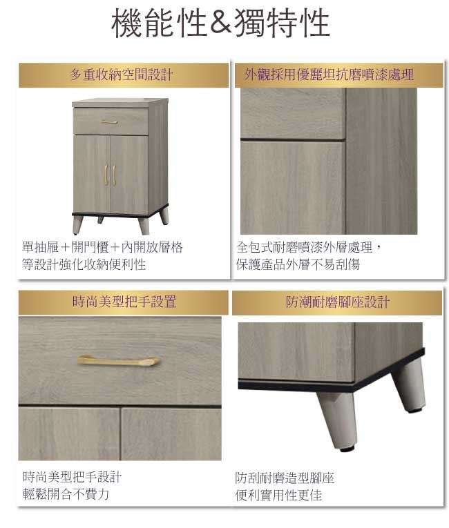 - ◆產品名稱:【綠家居】高格二門2尺單抽低餐櫃/收納櫃