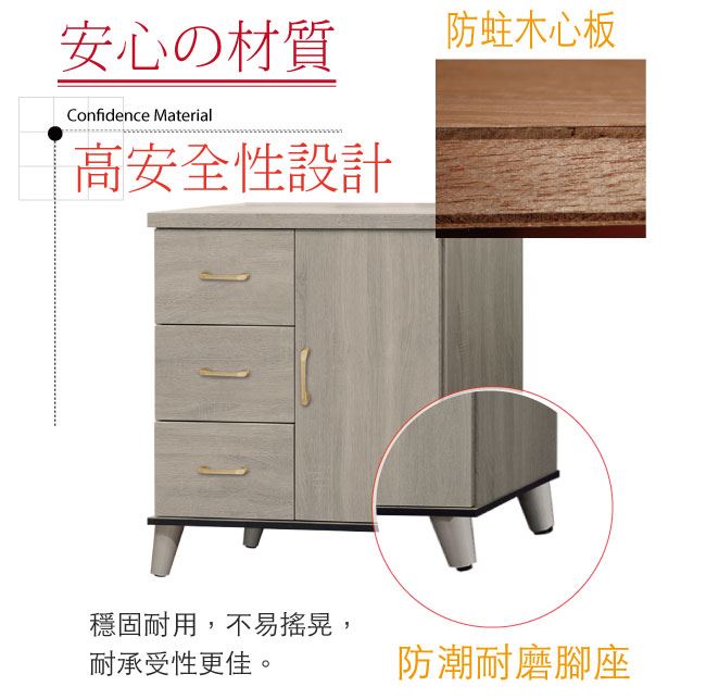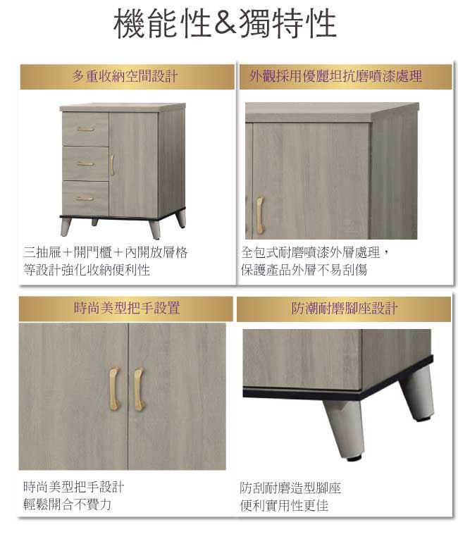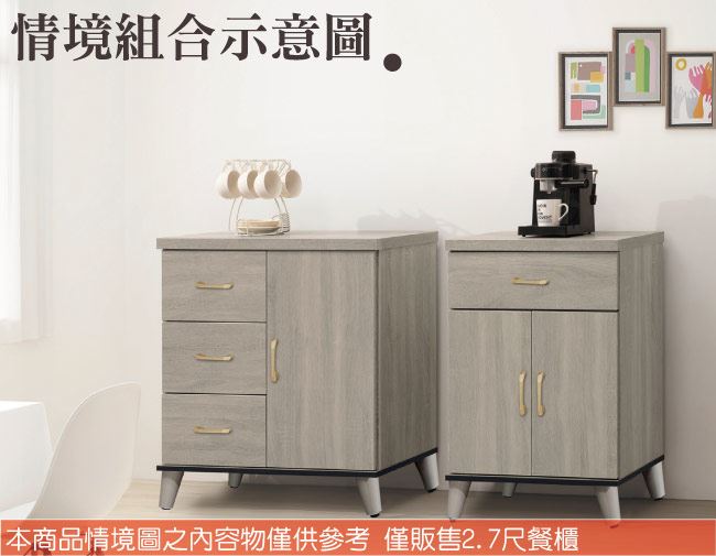- ◆產品名稱:【綠家居】高格2.7尺單門三抽低餐櫃/收納櫃